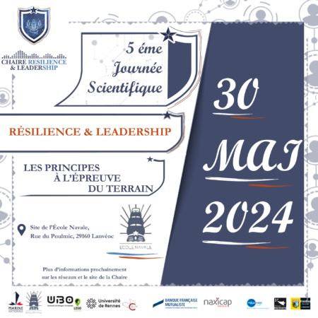 La Chaire Résilience et Leadership a eu le plaisir d’organiser, le jeudi 30 mai 2024, la 5ᵉ Journée Scientifique à l’École navale. Cet événement a une nouvelle fois souligné l’importance du dialogue entre la recherche académique et les pratiques professionnelles.